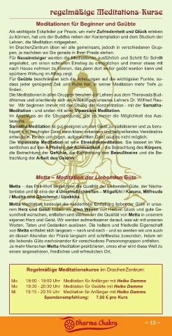 Regelmäßige Meditationskurse im DrachenZentrum: