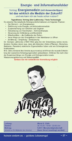 Tagesthema: Vortrag über Lakhovsky / Tesla Technologie